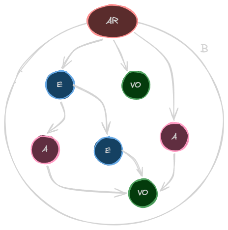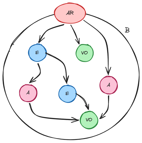 An Aggregate consists of two fundamental structural elements: the Boundary (B) and the Aggregate Root (AR).
