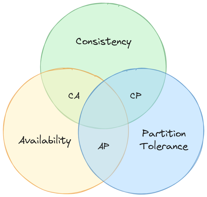 - AP (Availability + Partition Tolerance): Cassandra, DynamoDB, CouchDB. These systems favor availability and will continue serving requests during a partition, at the cost of returning potentially stale data.