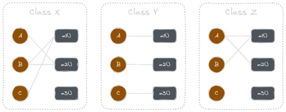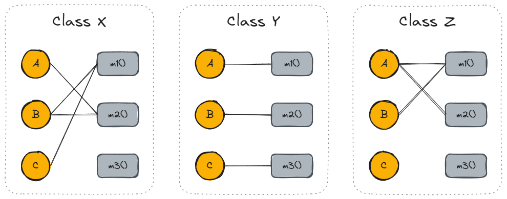 The idea is simple: if every method in a class uses every field, the class is perfectly cohesive. If methods cluster into groups that each touch a separate set of fields, the class is doing too many things.