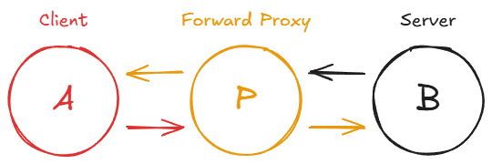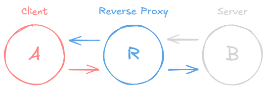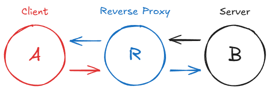 The key difference from a forward proxy: with a forward proxy, the server does not know who the real client is. With a reverse proxy, the client does not know which backend server is actually handling the request. The client thinks it is talking directly to the server.